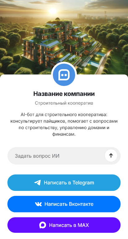 Бот работает в Telegram, ВК, MAX и на сайте 24/7, снижает нагрузку на сотрудников кооператива, ускоряет ответы и помогает выстроить более понятные отношения с пайщиками.