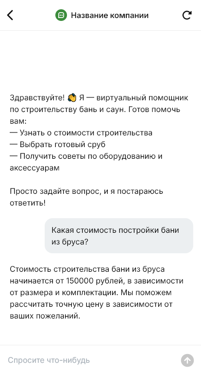 Баню и сауну редко выбирают «по одной цене». Клиенты сравнивают варианты: каркас/брус/бревно, размеры, планировка, печь, дымоход, отделка, электрика, утепление, сроки. В мессенджерах запросы часто выглядят как «хочу баню 6×4» или «нужна сауна в доме», и без грамотных уточнений менеджер тратит время на пересбор информации, а часть лидов уходит. Бот для строительства бань и саун помогает быстро собрать бриф, показать понятный процесс и довести клиента до замера и расчёта.