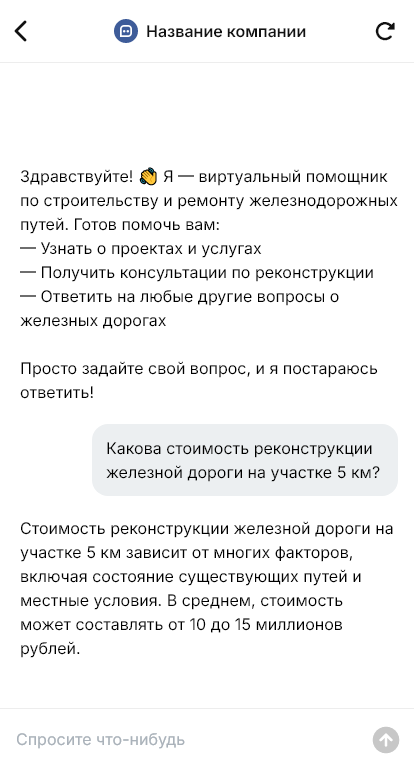 Ремонт и строительство железнодорожных путей — высокорегламентированные работы, где важны допуски, безопасность, окна, согласования, логистика материалов и чёткий график. Заказчики ожидают от подрядчика структурированный подход: быстро понять объём, собрать исходные данные и предложить план работ и смету. Бот для строительства и ремонта ЖД путей помогает первично квалифицировать запрос, собрать вводные и передать их инженерам без потерь.