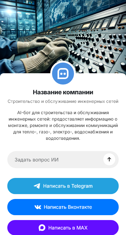 В итоге инженерные сети строятся и обслуживаются быстрее и дисциплинированнее. Бот работает в Telegram, VK, MAX и на сайте, повышает качество исходных данных, ускоряет расчёты и помогает довести проект от заявки до сдачи и сервиса.