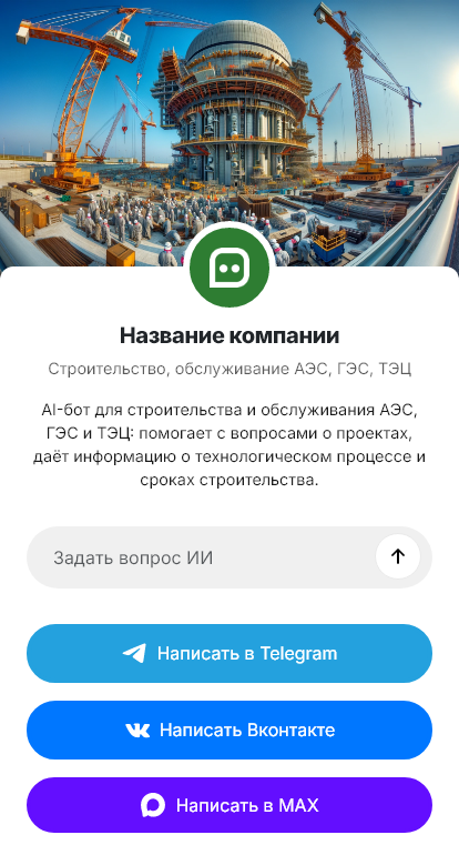 Бот работает в Telegram, ВК, MAX и на сайте 24/7, повышает скорость обработки обращений и качество входящих данных, что особенно важно для сложных энергетических проектов.