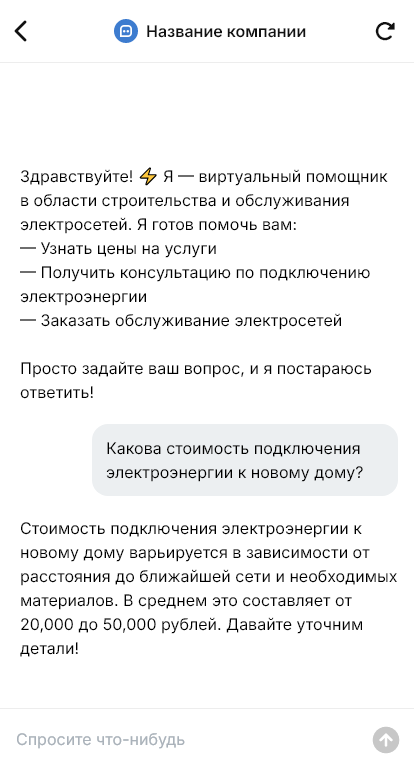 Строительство и обслуживание электросетей — это задачи, где важны скорость реакции и точность вводных. Заказчики пишут «нужно подключение», «нужен ремонт линии», «проложить кабель», «сделать ввод/щит», но без уточнений невозможно оценить объём работ, сроки и стоимость. При ручной переписке детали собираются долго, часть обращений теряется, а на объект выезжают без полного понимания условий. Бот для электросетей помогает автоматизировать первичный контакт, собрать исходные данные и довести клиента до согласованного выезда и сметы.