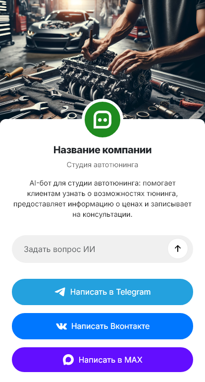 Студия автотюнинга продаёт не отдельные услуги, а эмоцию и индивидуальность: внешний вид, звук, динамика, интерьер, комфорт. Клиенты часто приходят с идеей «хочу красиво» или «хочу, чтобы ехало», но без конкретики сложно оценить проект и предложить правильные решения. В переписке возникают десятки вопросов: что можно сделать на моей машине, какие есть варианты по стайлингу, сколько времени займёт, каков бюджет, какие материалы, гарантии и юридические нюансы.
