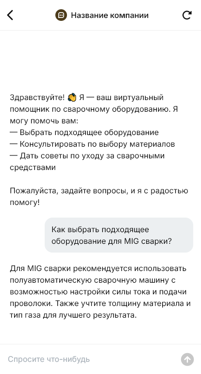 Сварочное оборудование продаётся точнее, когда бот подбирает его под металлы, толщины и режим работ