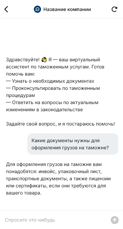 Отдельная ценность — контроль статусов и коммуникации: бот уведомляет, что документы получены, где есть пробелы, что нужно дослать, когда подана декларация и когда ожидается выпуск. Внедрение настраивается под регламенты компании, маршрутизацию по менеджерам и интеграцию с CRM, чтобы каждое обращение превращалось в понятный кейс с дедлайнами.