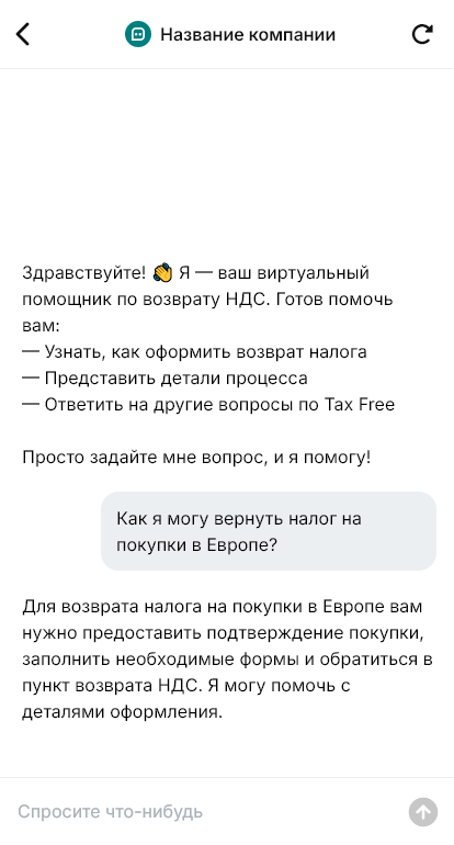 По Tax Free у туристов всегда много вопросов: условия возврата, какие чеки и документы нужны, сроки, где оформить, что делать при вылете, какие магазины участвуют. Если отвечать медленно, клиент не оформляет возврат или обращается в другой сервис. Бот для Tax Free автоматизирует первичную консультацию и помогает довести запрос до оформления.