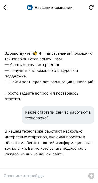 В итоге технопарк повышает конверсию обращений в резидентство, ускоряет сбор документов и делает взаимодействие более удобным, потому что бот становится единым каналом для заявок и поддержки.