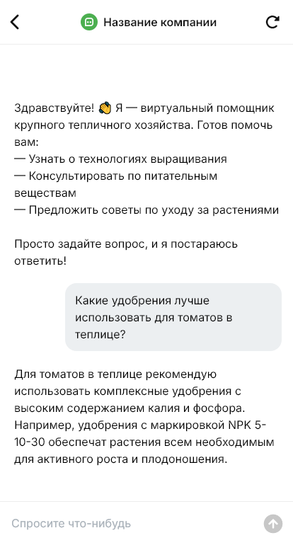 В итоге тепличное хозяйство становится более предсказуемым, снижается риск простоев и потерь, а продажи и производство работают синхроннее благодаря боту, который фиксирует задачи, режимы и заявки на сбыт в понятном процессе.