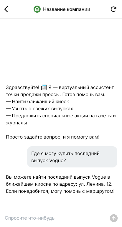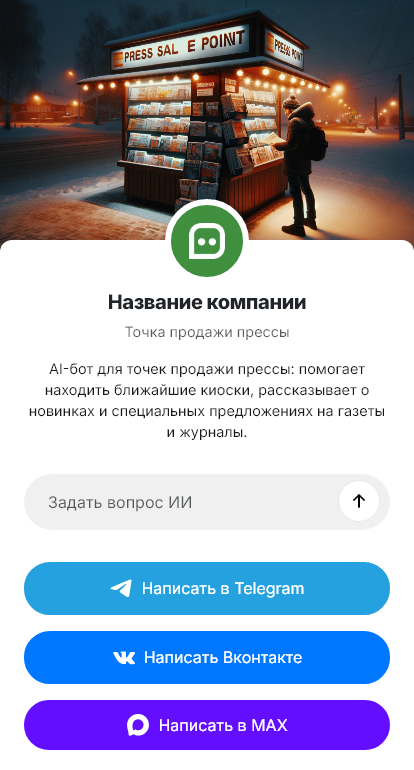 Точки продажи прессы получают обращения: есть ли свежий выпуск, во сколько привоз, можно ли отложить, есть ли подписка, где находится киоск и график работы. Если ответить некому, покупатель проходит мимо. Бот для точки продажи прессы автоматизирует ответы и помогает удерживать покупателей.