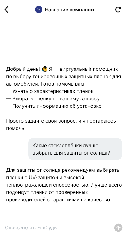 Защитные тонировочные плёнки продаются увереннее когда бот подбирает вариант под задачи и объясняет эффект без маркетинговой воды
