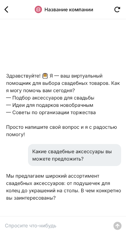 Свадебные товары продаются комплектами когда бот помогает паре пройти подготовку и закрыть всё в одном месте