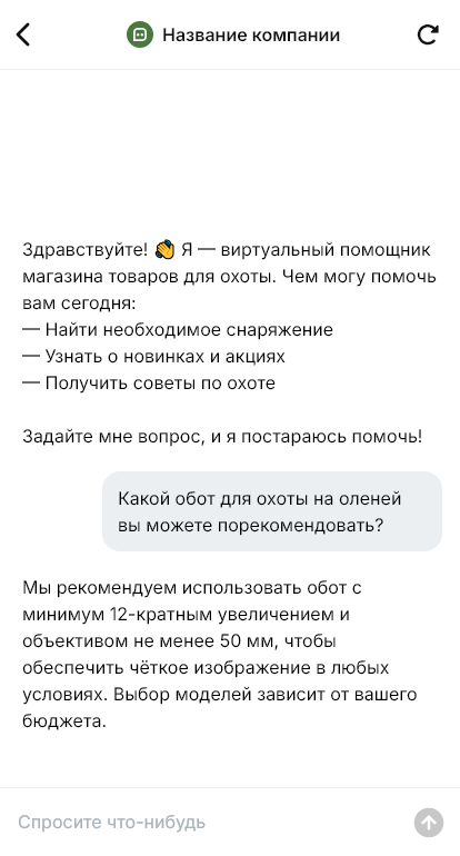 Как товарам для охоты продаваться лучше, когда бот помогает подобрать экипировку и оформить заказ