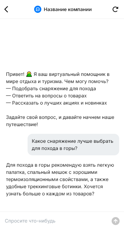Как товарам для отдыха и туризма продаваться эффективнее, когда бот помогает подобрать снаряжение