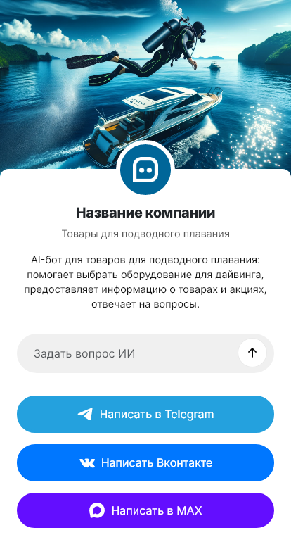 Снаряжение для подводного плавания выбирают особенно внимательно: маска, трубка, ласты, гидрокостюм, компенсатор, регуляторы, аксессуары. Покупатели спрашивают про размеры, посадку, условия воды, температуру, совместимость и обслуживание. Бот для магазина подводного плавания помогает автоматизировать первичную консультацию и собрать заявку на подбор комплекта.