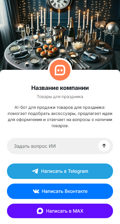 Праздничные товары расходятся быстрее когда бот подбирает под формат мероприятия и сразу оформляет доставку