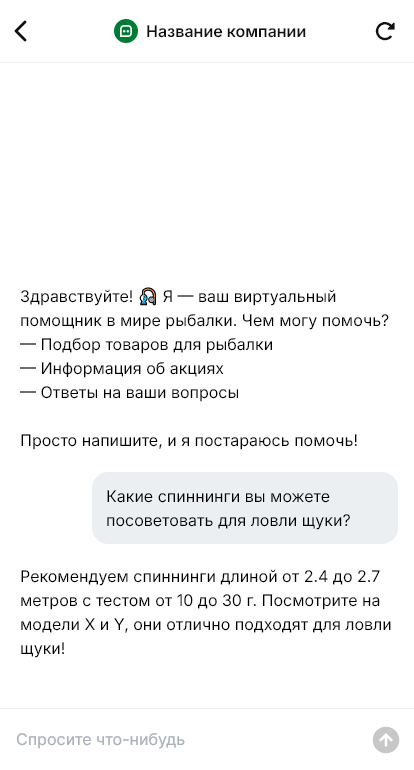 Рыболовные товары выбирают под конкретные условия: сезон, водоём, вид рыбы, стиль ловли, дальность заброса и бюджет. Клиенты спрашивают про тест удилища, катушки, лески, приманки и совместимость. Если консультант отвечает медленно, покупатель уходит. Бот для магазина рыбалки помогает автоматизировать первичный подбор и довести обращение до покупки.