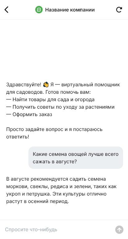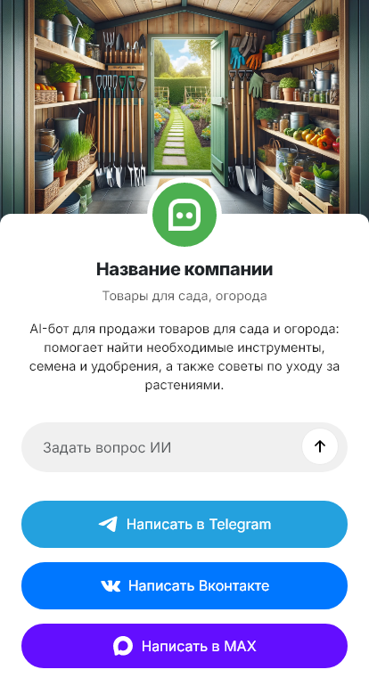 Внедрение настраивается под ваш ассортимент: наличие, аналоги, наборы, сезонность, доставка и оплата, интеграция с CRM. Бот может сохранять профиль участка клиента, чтобы рекомендации становились точнее и покупки оформлялись быстрее.