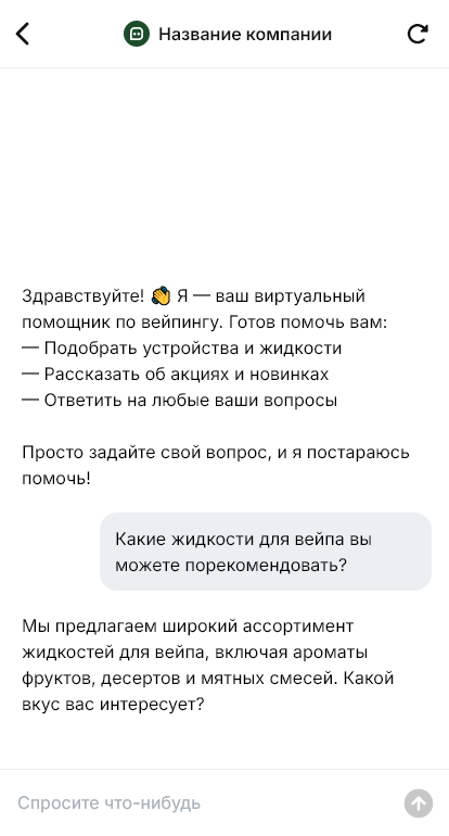 Вейп-шоп продаёт больше, когда бот помогает быстро подобрать расходники и оформить повторные покупки