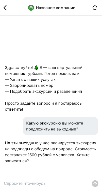 Турбаза и дом отдыха часто продаются как «поездка на природу», но у гостей разные ожидания: рыбалка, баня, прогулки, активности, семейный отдых, корпоратив, романтические выходные. Из-за этого переписка превращается в бесконечные уточнения: какие домики, что включено, можно ли с животными, есть ли питание, как добраться, какие развлечения. Если менеджер не успевает отвечать, клиент бронирует там, где всё объяснили быстрее.