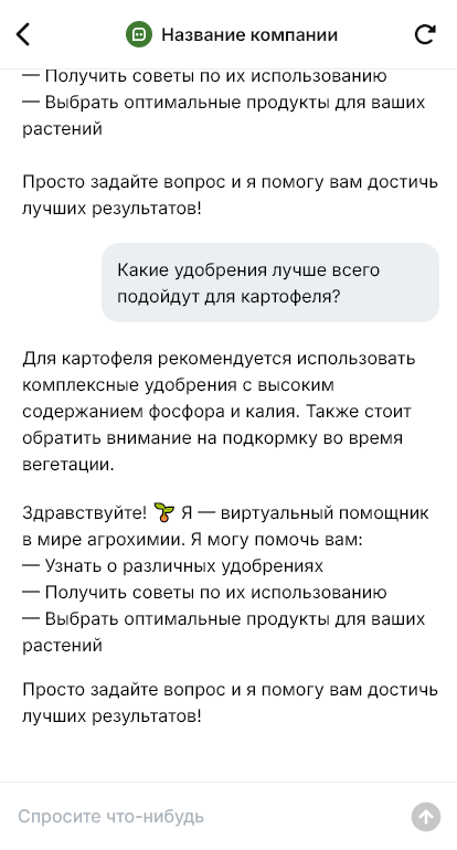 Агрохимическую продукцию выбирают увереннее когда бот помогает собрать схему ухода и купить всё сразу