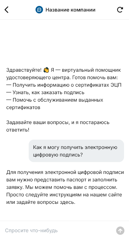 Удостоверяющий центр работает с потоком клиентов, которым нужна электронная подпись для отчётности, торгов, документооборота, маркировки, госуслуг и корпоративных задач. Люди часто путаются в видах сертификатов, сроках, требованиях к документам и процедуре идентификации. Если консультирование идёт вручную, растут очереди, возникают ошибки в пакете документов и увеличивается количество повторных визитов.