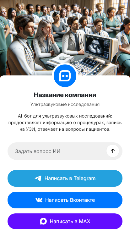 В итоге УЗИ записывают быстрее, а клиника получает больше подтверждённых визитов и меньше потерь. Бот работает в Telegram, VK, MAX и на сайте, превращая вопросы о времени в запись на обследование.