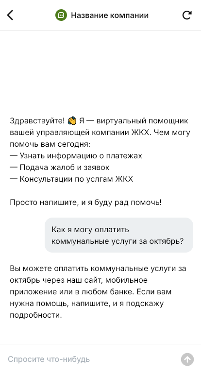Управляющая компания ЖКХ получает поток однотипных запросов каждый день: «когда придёт мастер», «почему нет горячей воды», «как передать показания», «как сделать перерасчёт», «где реквизиты», «как вызвать аварийку». Когда коммуникация идёт через десятки чатов и телефонов, заявки теряются, люди раздражаются, а диспетчерская работает в режиме постоянного пожара.
