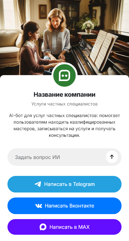 Частные специалисты получают больше заказов когда бот быстро выясняет задачу и назначает удобное время без переписок