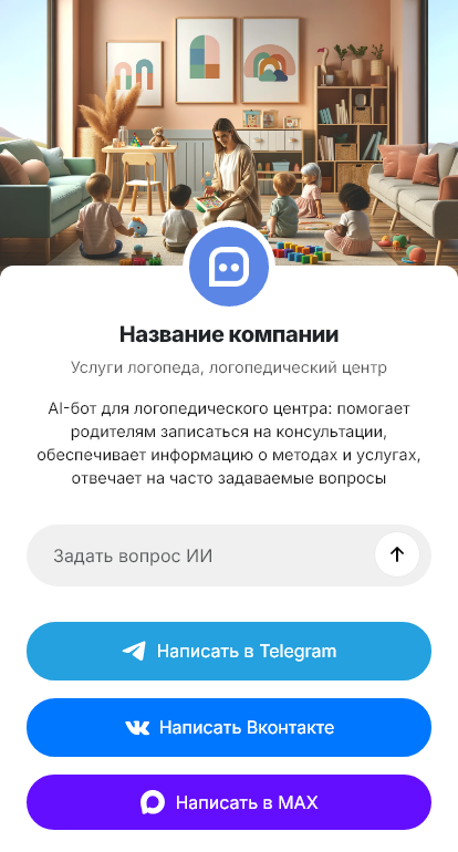 В итоге больше обращений превращается в диагностику и регулярные занятия, а расписание заполняется равномернее. Бот работает в Telegram, VK, MAX и на сайте, превращая сообщения в подтверждённые записи к логопеду.