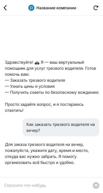 Трезвый водитель заказывается быстрее когда бот уточняет адрес и условия и подтверждает выезд без лишних звонков