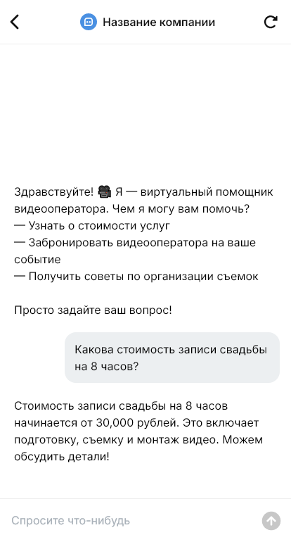 Видеооператоры получают запросы про стоимость, занятость дат, длительность съёмки, монтаж и сроки готовности. Когда вы на площадке, отвечать мгновенно сложно — и часть заявок уходит. Бот для видеооператора помогает фиксировать каждый запрос и автоматизировать первичный контакт.