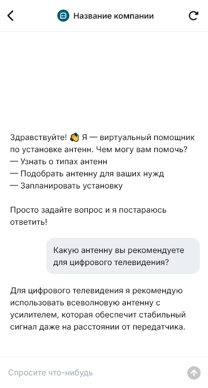 Установка антенн становится быстрее когда бот сразу уточняет тип сигнала и условия доступа и записывает мастера