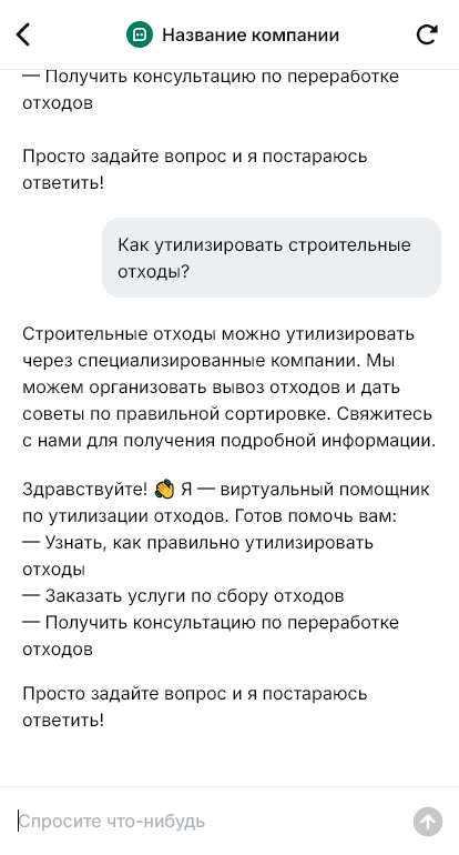 Вывоз и утилизация отходов становятся проще когда бот быстро собирает параметры и адрес