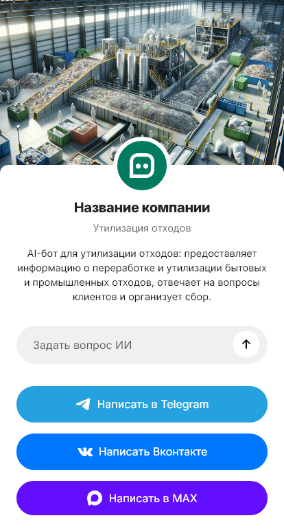 Для компании по утилизации бот полезен в управлении выездами и документооборотом. Он принимает заявки круглосуточно, помогает распределять машины и контейнеры, напоминает о времени приезда, собирает подтверждения и уточнения. Для корпоративных клиентов бот может поддерживать регулярный график вывоза и принимать дополнительные заявки по объектам. Он также отвечает на частые вопросы о правилах и ограничениях, снижая нагрузку на диспетчеров.