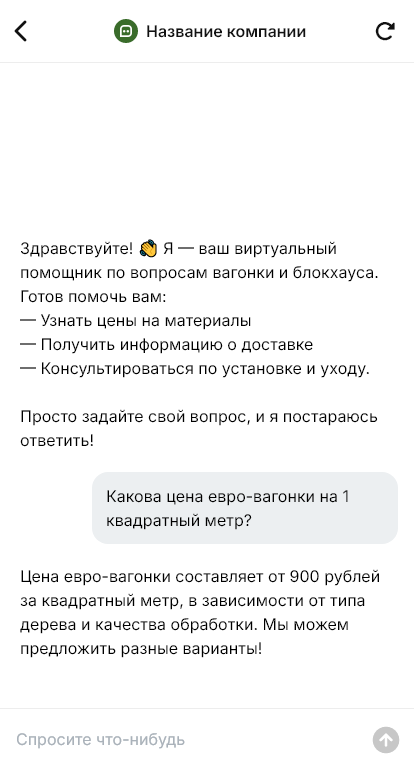 Для компании бот делает консультацию системной. Он объясняет моменты хранения и подготовки древесины, помогает подобрать покрытие и даёт чек-лист для монтажа. Менеджер подключается на этапе финального согласования, потому что основные параметры и расчёт уже зафиксированы.