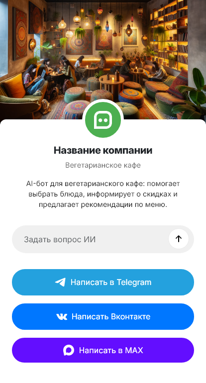 В итоге вегетарианское кафе получает больше бронирований и заказов, а гости чувствуют заботу и ясность. Бот работает в Telegram, VK, MAX и на сайте, превращая вопросы о составе в подтверждённые визиты и покупки.