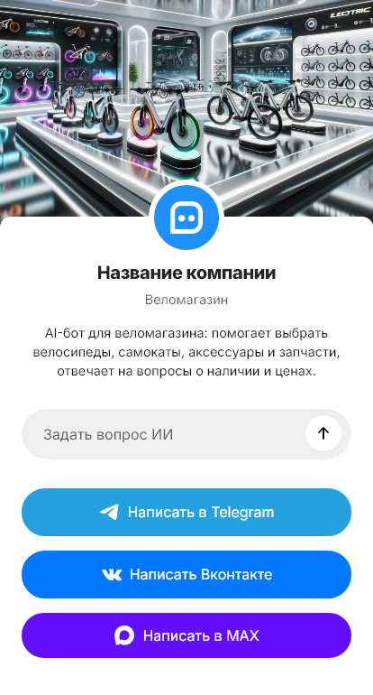 Велосипед выбирают по росту, стилю катания, размеру рамы, амортизации и бюджету. Покупатели пишут в мессенджеры, спрашивают про наличие, размер и доставку. Бот для веломагазина автоматизирует первичный подбор и доводит запрос до покупки.
