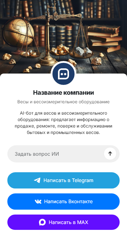 Бот для компании по весоизмерению превращает размытый запрос в понятное техническое задание. Он уточняет тип объекта и сценарий взвешивания, максимальную массу и шаг измерения, габариты платформы, требования к точности и поверке, необходимость печати этикеток, интеграции с 1С/WMS/кассой, режим работы и условия среды (пыль, влажность, вибрации, мороз). Если у клиента уже есть оборудование, бот попросит модель, фото шильдика и причину замены — чтобы предложить совместимый аналог.