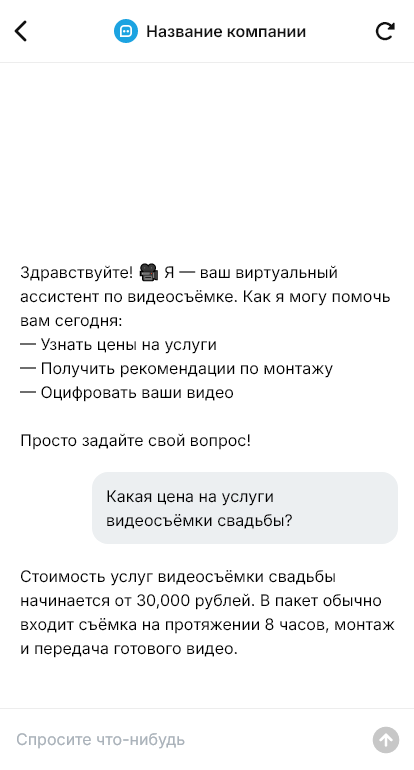 Внедрение настраивается под работу команды: пакеты, допуслуги (монтаж, графика, субтитры, цветокоррекция), условия предоплаты, правила переноса дат, логистика выезда, интеграция с CRM и календарём. Бот помогает избежать накладок и делает коммуникацию предсказуемой.
