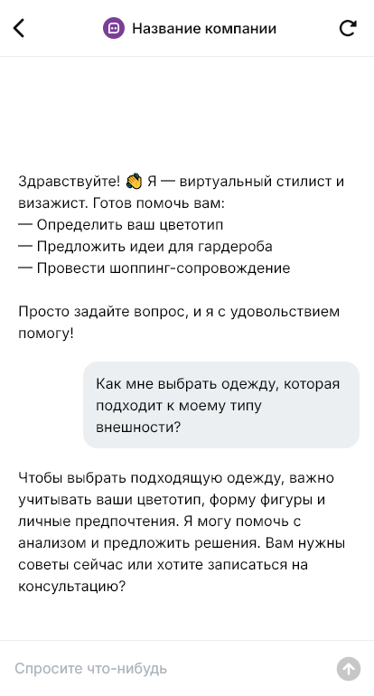 - уточняет стиль, дресс‑код и предпочтения