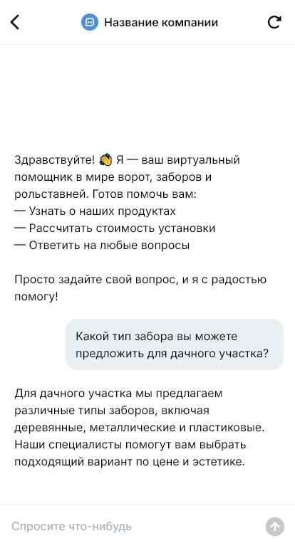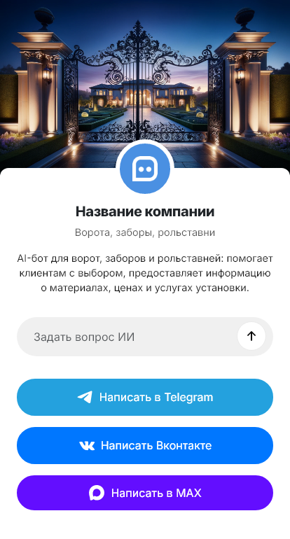 Компании по воротам, заборам и рольставням получают много обращений с одинаковыми вопросами. Клиенты уточняют цену, сроки изготовления и монтажа, материалы, автоматику, варианты профиля и цвет, а также просят рассчитать стоимость по замерам. При ручной переписке менеджеры тратят время на сбор вводных, а часть запросов теряется или растягивается на дни, пока клиент ждёт ответа. В конкурентной нише скорость реакции напрямую влияет на продажу.
