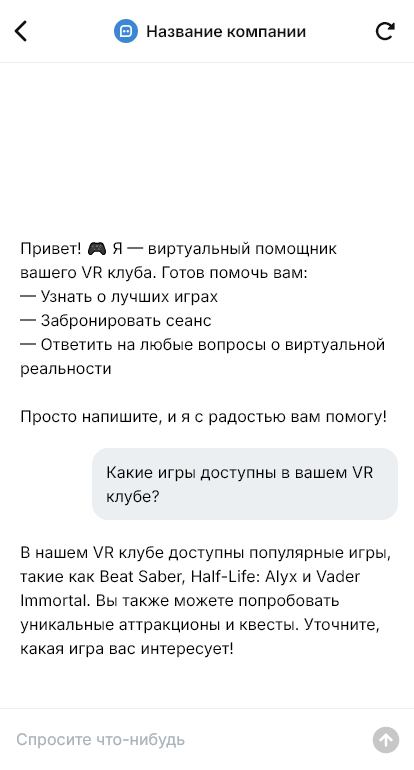 VR клуб увеличивает посещаемость, когда бот помогает выбрать игры и бронирует сеанс за минуту
