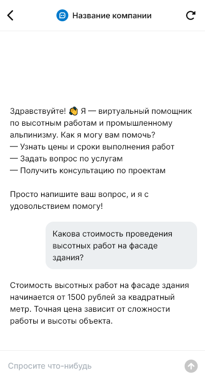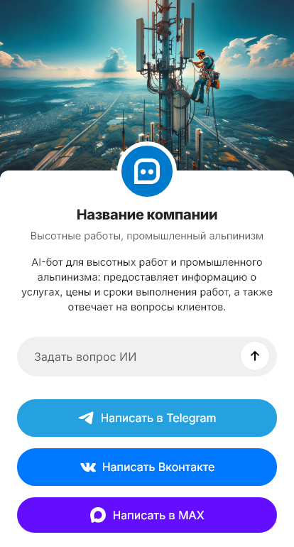 Высотные работы и промышленный альпинизм часто заказывают срочно: герметизация швов, ремонт фасада, мойка остекления, монтаж вывесок, установка кондиционеров, очистка кровли от снега и льда. Клиенты пишут в мессенджеры, присылают фото и ждут быстрый ответ — можно ли сделать, сколько стоит и когда приедете. Бот для высотных работ помогает не терять обращения и быстро собирать данные для расчёта и выезда.