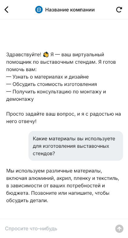Выставочные стенды продаются легче когда бот собирает ТЗ и рассчитывает проект по параметрам