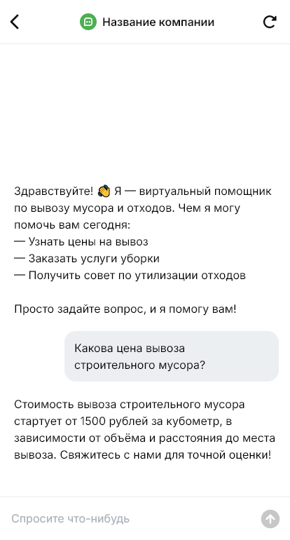 Для компании бот полезен в планировании маршрутов и загрузки. Он собирает заявки, помогает распределять выезды, напоминает клиентам о приезде и фиксирует переносы. Он также снижает количество конфликтов, потому что заранее объясняет, что входит в услугу, как считается объём и какие ограничения есть по видам отходов. После выполнения бот может собрать отзыв и предложить регулярный вывоз для организаций или управляющих компаний.