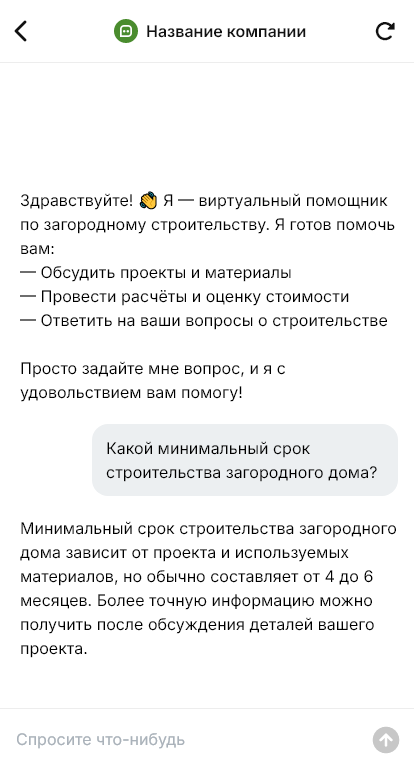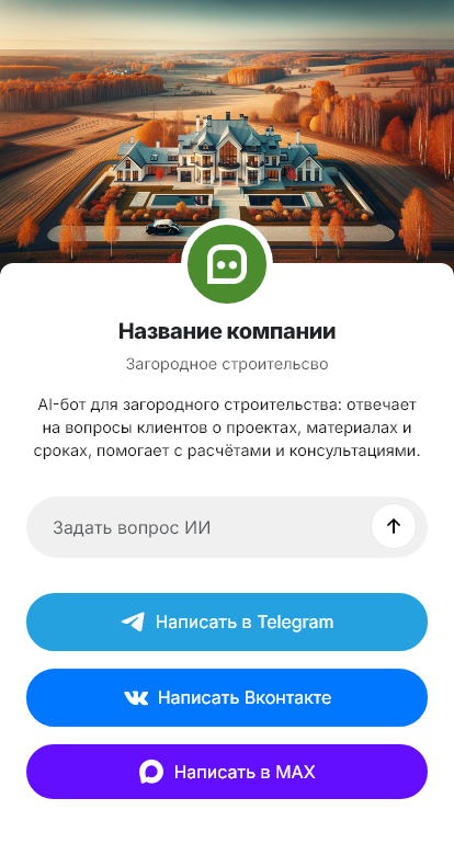Загородное строительство — это сложная услуга с большим количеством этапов и согласований. Клиенту важно понимать последовательность работ, сроки, что входит в смету, какие материалы используются и какие документы оформляются. На этапе первого обращения люди обычно задают много вопросов, а менеджеры повторяют одни и те же объяснения. Если переписка занимает слишком много времени, часть клиентов уходит, а часть зависает без следующего шага.