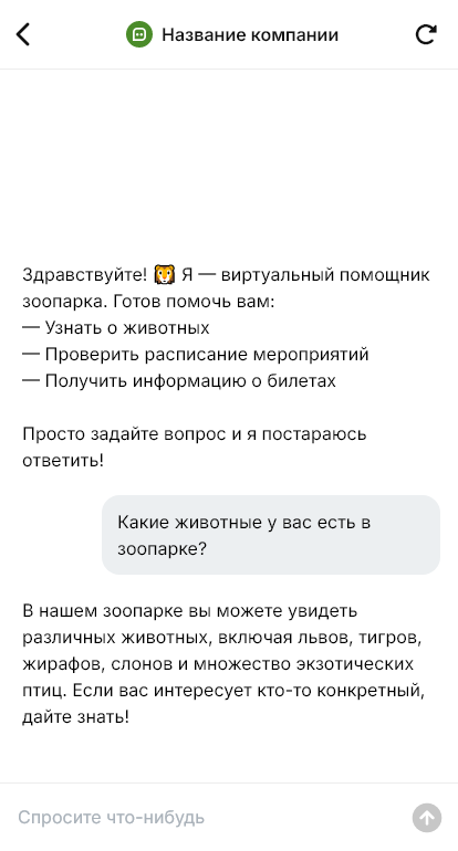 Зоопарк принимает больше посетителей когда бот отвечает на вопросы и ведёт к покупке билета